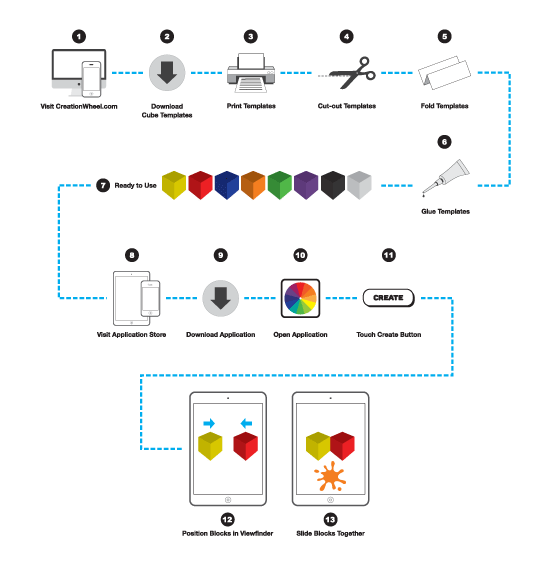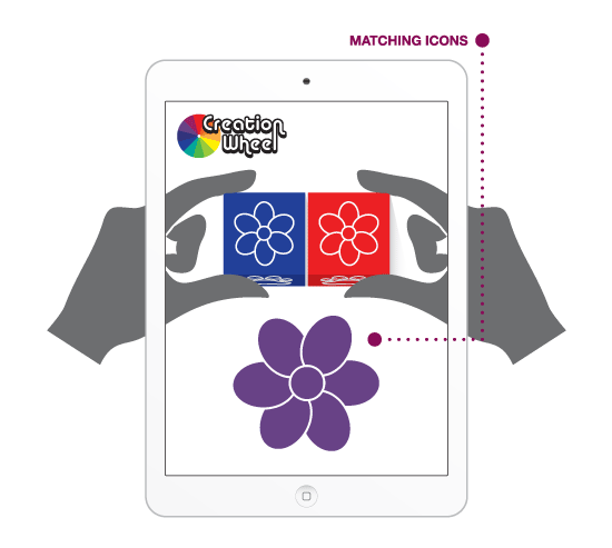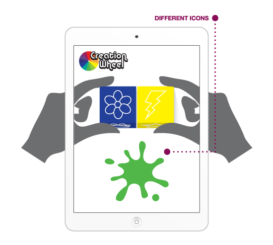 Creation Wheel is an original augmented reality application in which I created a user interface design. The app would provide a teaching aid for young children learning the basics of color theory, the composition of colors.